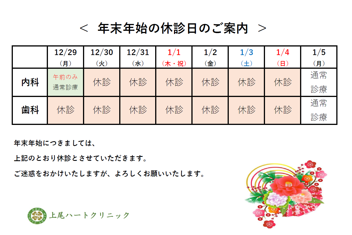 年末年始休診日のご案内
